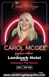 An evening of mediumship with one of the UK’s top mediums. Carol McGee has a unique sense of humor. Tears & laughter are always on the cards. Join us as this gifted medium connects you with those loved ones who have passed over.