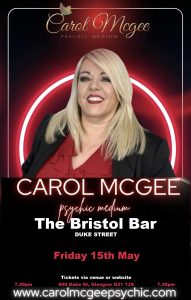 An evening of mediumship with one of the UKS top mediums. Carol has a unique sense of humor. Tears & laugher is always on the cards. Join us, as this gifted medium connects you with those friends and family who have passed over.
